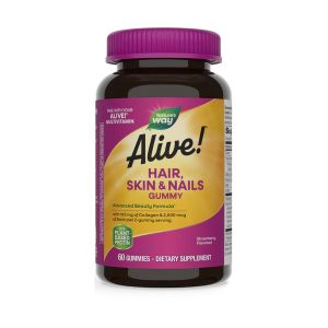 Nature’s Way Alive! Hair, Skin & Nails Gummies — це харчова добавка, створена для комплексної підтримки зовнішнього вигляду та стану волосся, шкіри і нігтів. Формула поєднує біотин, колаген, вітаміни та рослинні компоненти, які сприяють зміцненню волосся, покращенню текстури шкіри та підвищенню міцності нігтів.