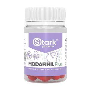 Stark Pharm Modafinil Plus - біологічно активний добавка, що містить 100 мг модафінілу і теаніну, представлена у вигляді 20 капсул. Цей продукт розроблено для підвищення розумової активності та концентрації.