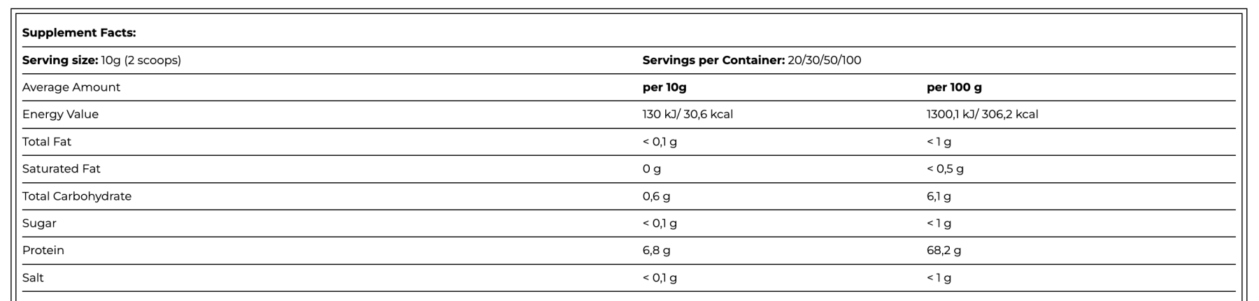 BCAA: 7000 мг (лейцин — 3500 мг, ізолейцин — 1750 мг, валін — 1750 мг)