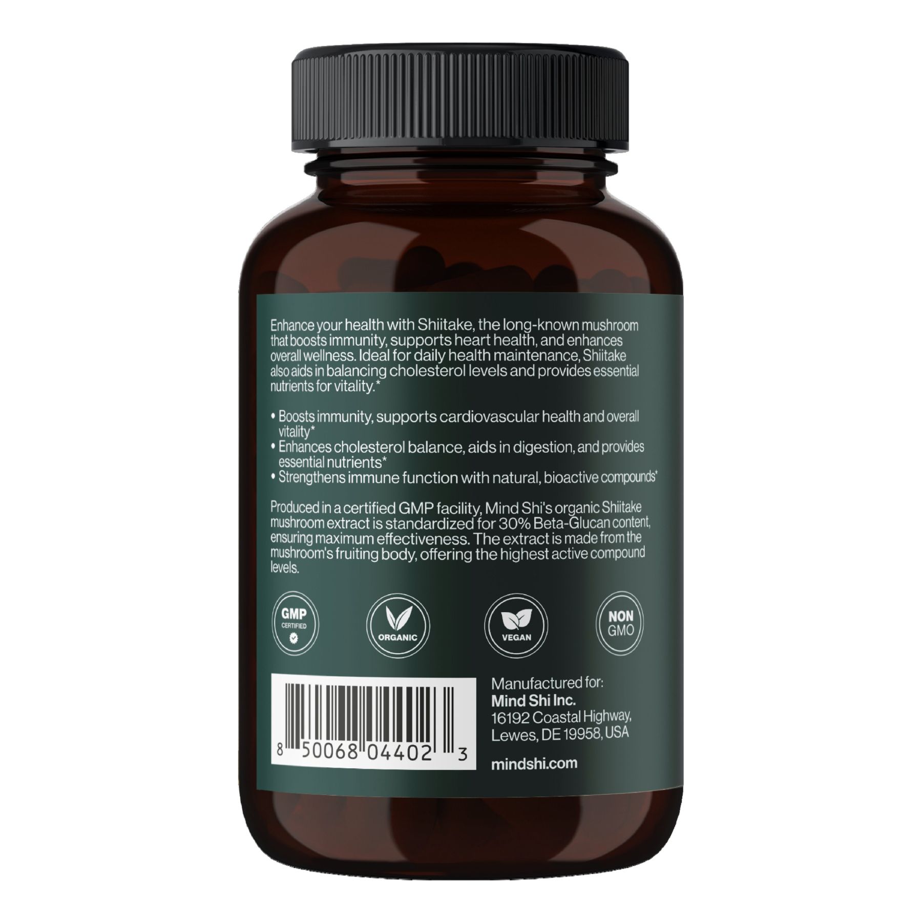 Mind Shi Organic Shiitake Extract – це високоякісна біологічно активна добавка на основі екстракту гриба шиїтаке (Lentinus edodes). Шиїтаке відомий своїми потужними імуномодулюючими, антиоксидантними та кардіозахисними властивостями. Цей гриб століттями використовувався в традиційній медицині Східної Азії для підтримки здоров’я серця, зміцнення імунітету та поліпшення травлення.