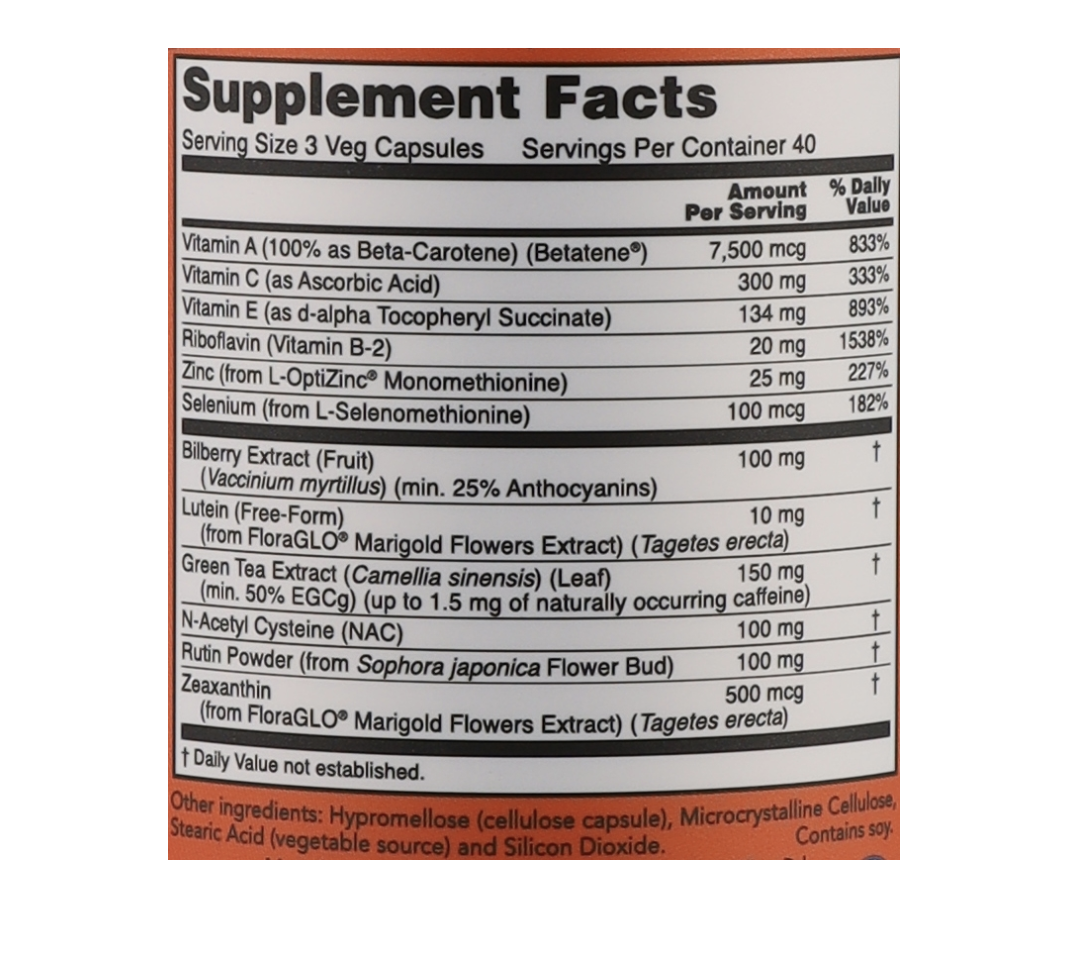 Крім антиоксидантів, формула містить вітамін A (бета-каротин) — необхідний для синтезу зорового пігменту родопсину, який відповідає за здатність бачити при слабкому освітленні. Вітамін C підсилює стінки капілярів і сприяє покращенню кровообігу в очах, а вітамін E знижує ризик дегенеративних змін сітківки.