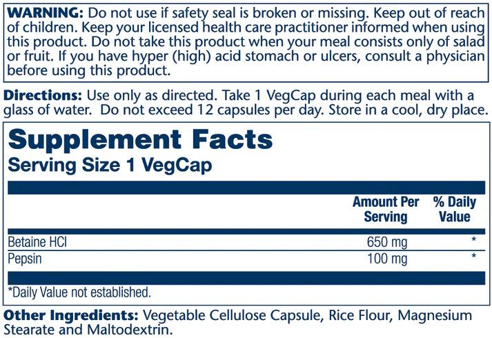 - Бетаїн HCl — 650 мг
