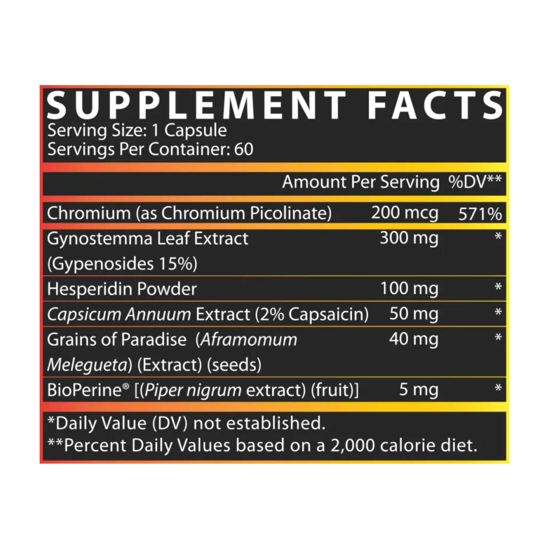 Екстракт перцю Capsicum Annuum (50 мг, 2% капсаїцину) – стимулює обмін речовин та підвищує витрати калорій.