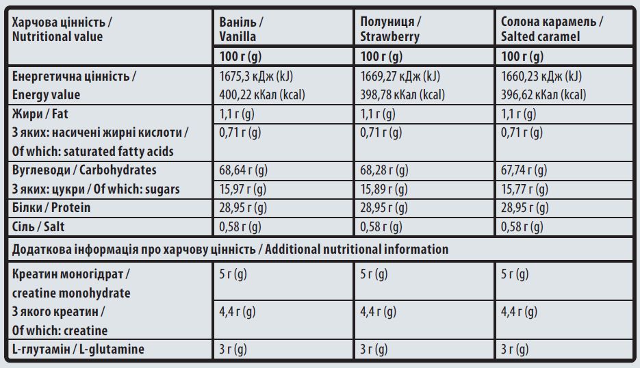 У кожній порції (100 г) Sporter Muscle Gainer міститься все необхідне для повноцінного відновлення: