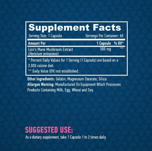 Haya Labs Lion's Mane Mushroom не є лікарським засобом і призначений для використання в рамках здорового способу життя. Продукт виготовлений відповідно до стандартів якості та контролю сировини.