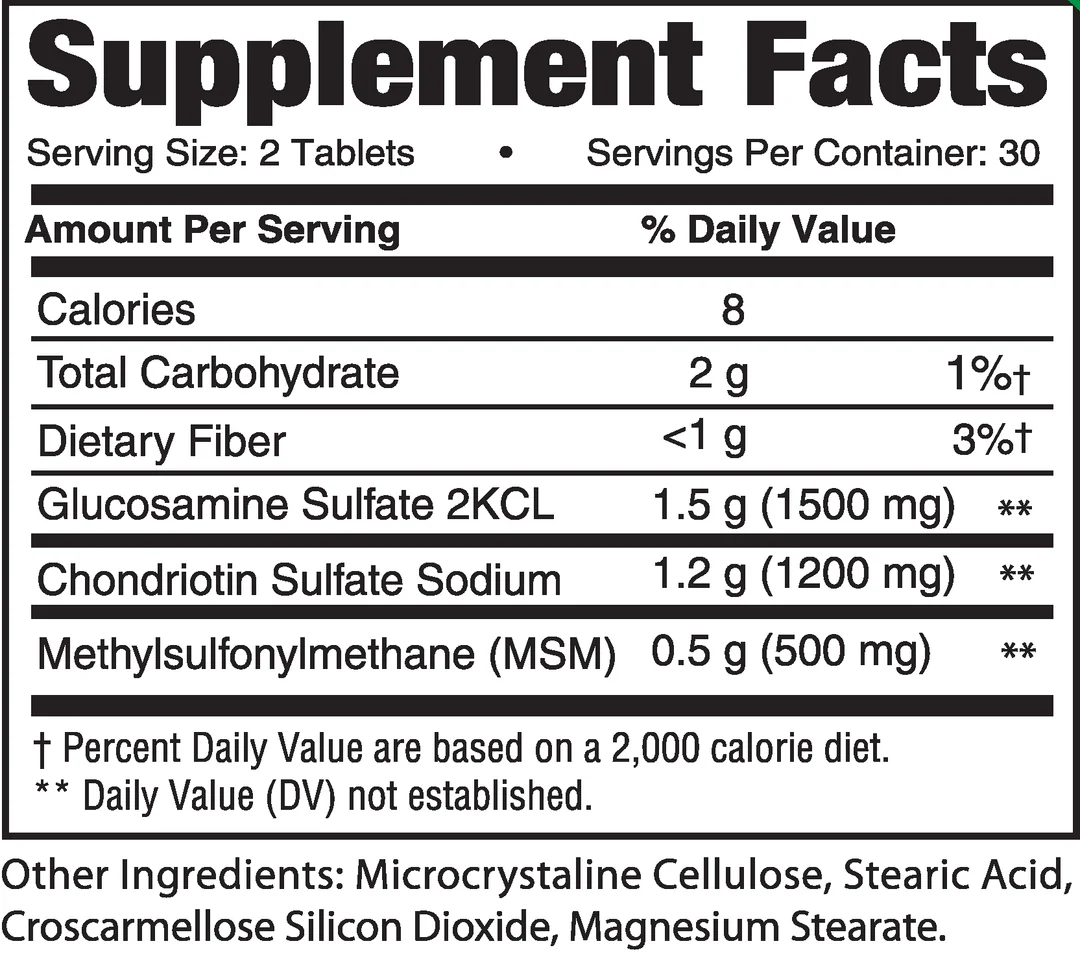 🔸 Склад на порцію (2 таблетки) Earth's Creation Glucosamine, Chondroitin, MSM 60 tabs: