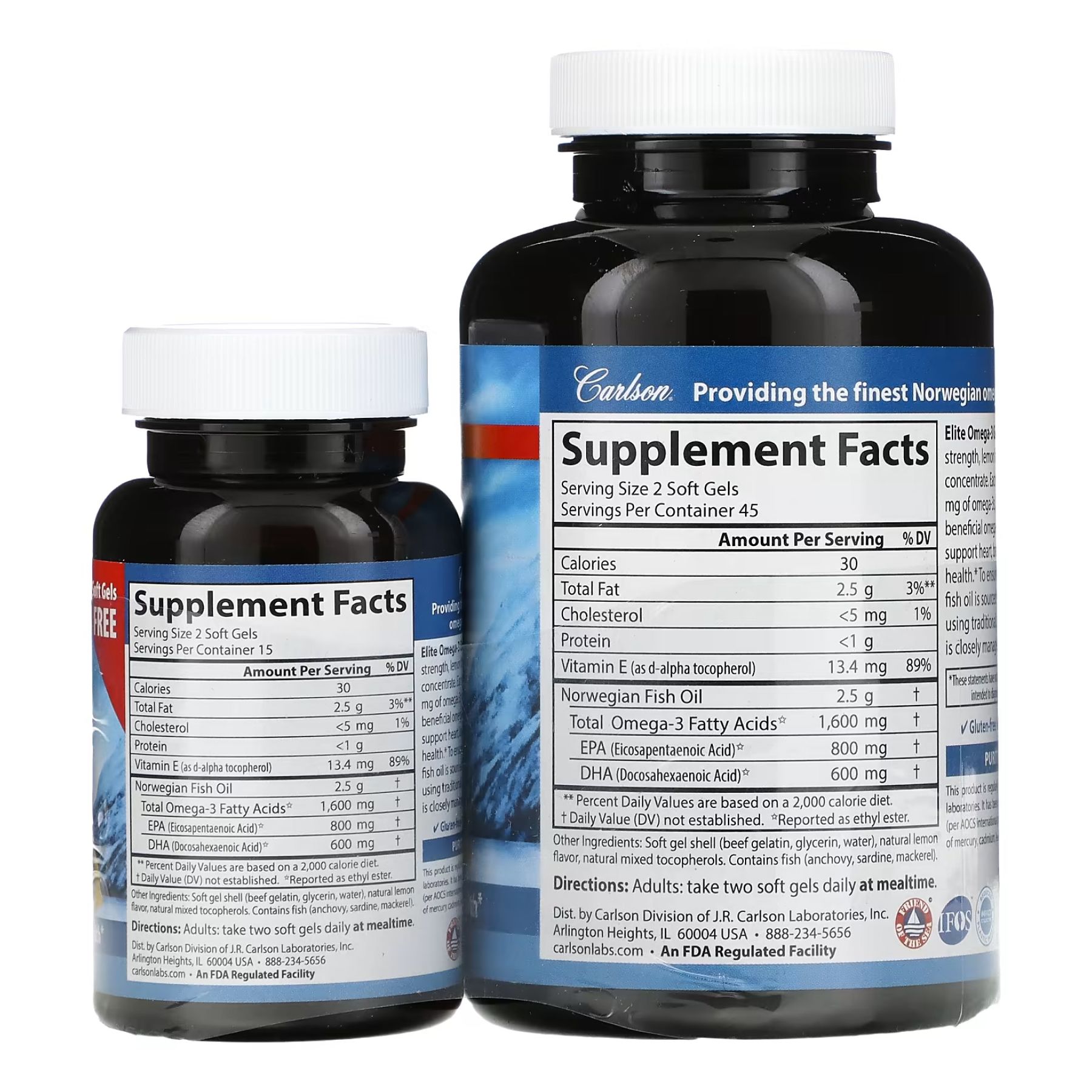 Carlson Labs Elite Omega-3 Gems 1600 mg - 90+30 softgels омега-3 рыбий жир