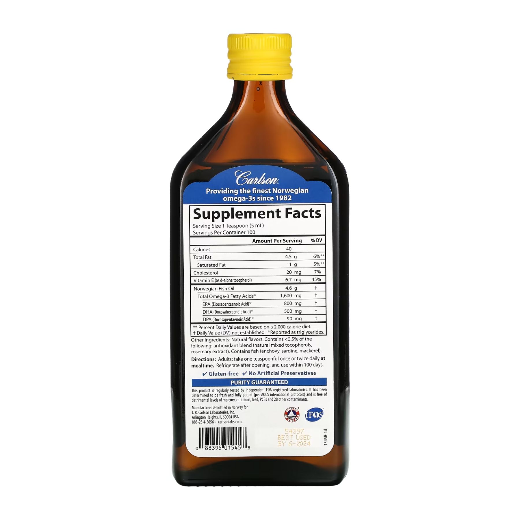 Carlson Labs The Very Finest Fish Oil (VFFO) 500 ml - це високоякісний додаток до раціону, що містить омега-3 жирні кислоти у вигляді рідкого риб'ячого жиру. З продуктом Carlson Labs ви отримуєте найкращі переваги риб'ячого масла для підтримки здоров'я.