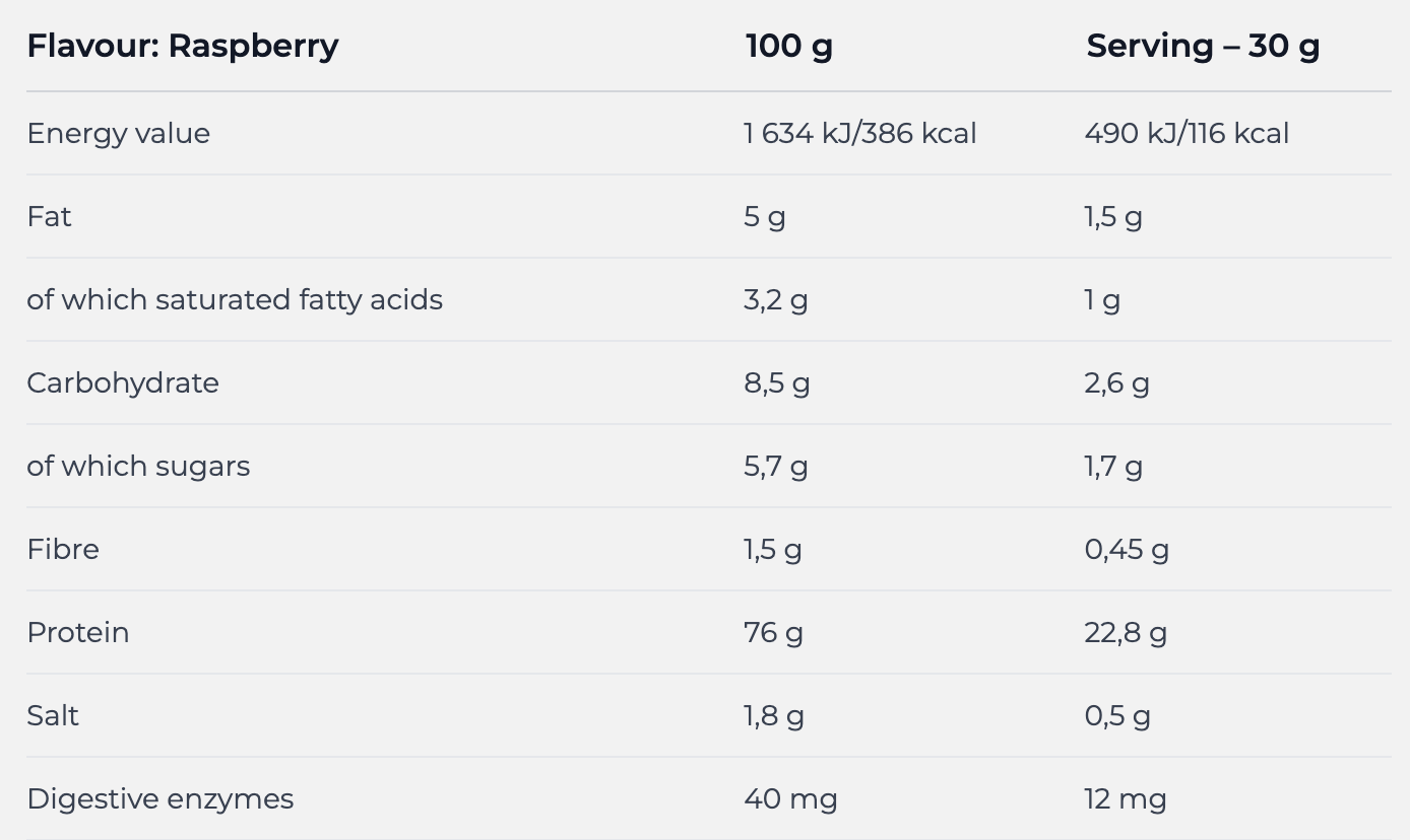 Формула збагачена ключовими незамінними амінокислотами, що не виробляються організмом самостійно. Саме вони відіграють вирішальну роль у м’язовому зростанні, синтезі білків, а також загальному імунному захисті організму. Завдяки наявності DigeZyme®, навіть люди з чутливим травленням можуть комфортно споживати цю добавку.