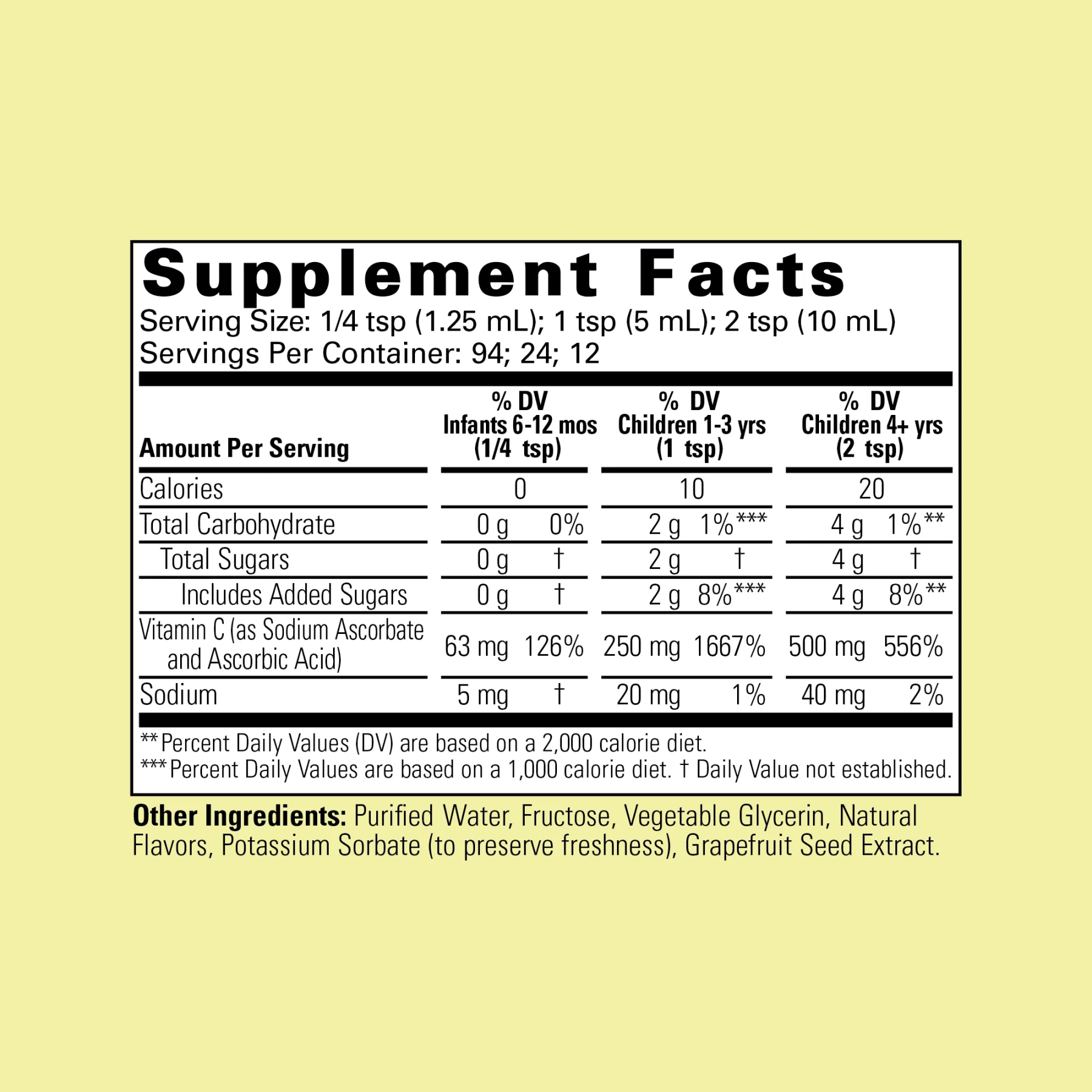 Склад ChildLife Essentials Liquid Vitamin C 118 ml (на 1 ч. л. / 5 мл):