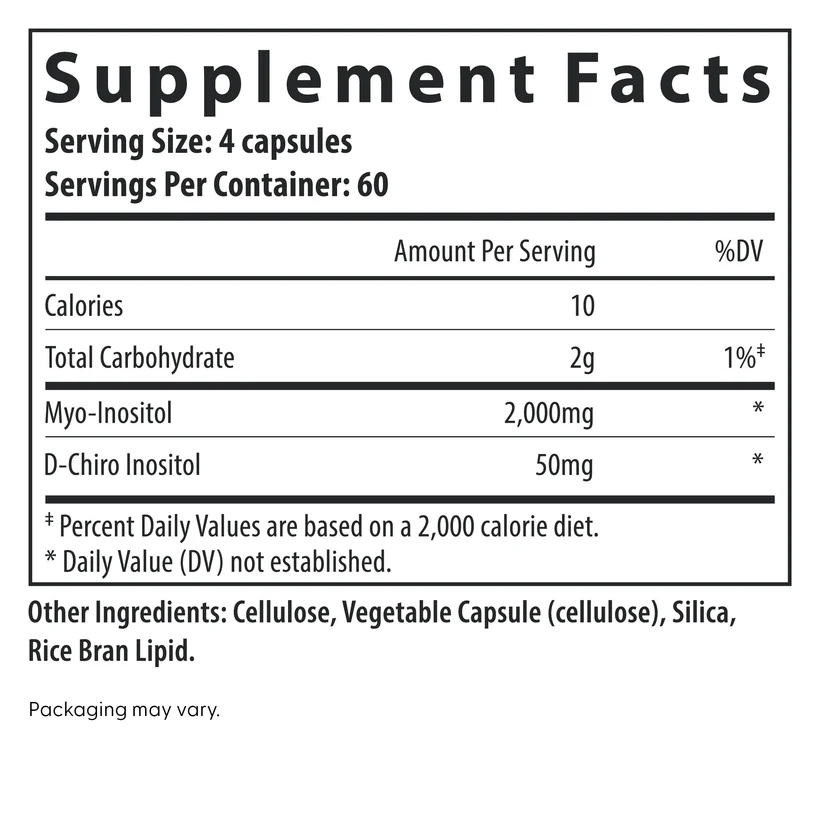 - D-хіро-інозитол (50 мг) підтримує овуляцію та якість яйцеклітин