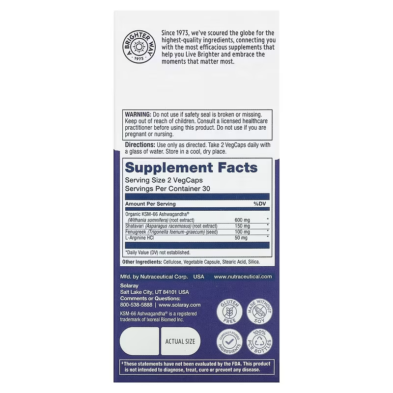- Органічний KSM-66 Ашваганда: 600 мг