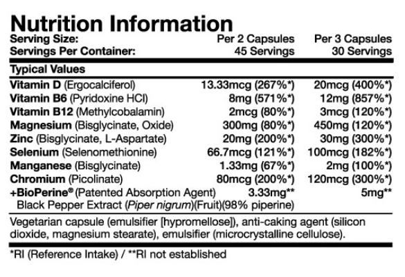 ✅ Потужний комплекс з 8 ключових нутрієнтів: включає магній, цинк, вітаміни B6 та B12, вітамін D3, селен та інші.